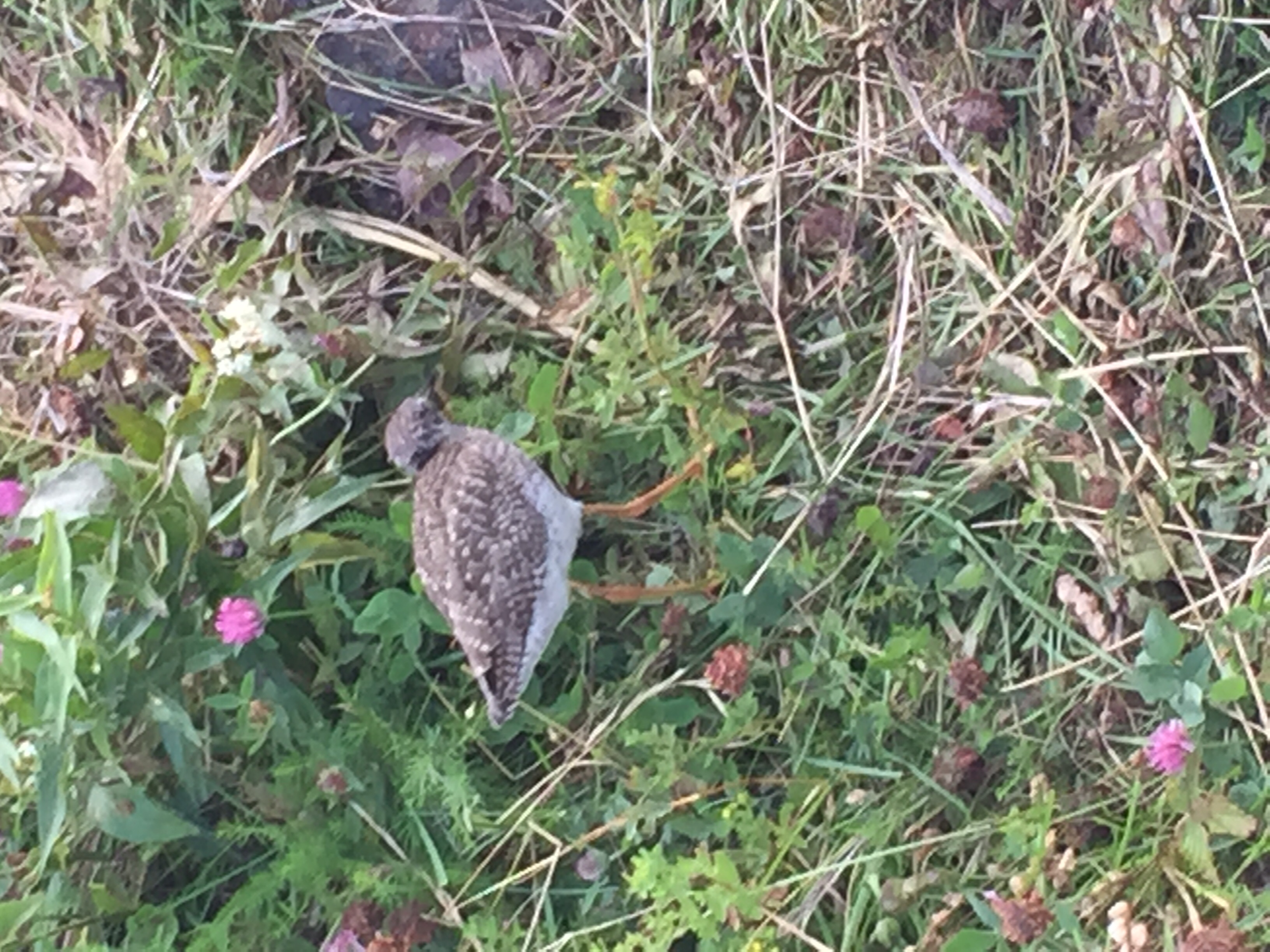 Onko tämä kenties punajalkaviklon poikanen? Utössä kännyllä napsaisin kuvan tänään enkä ole ihan varma tästä.
